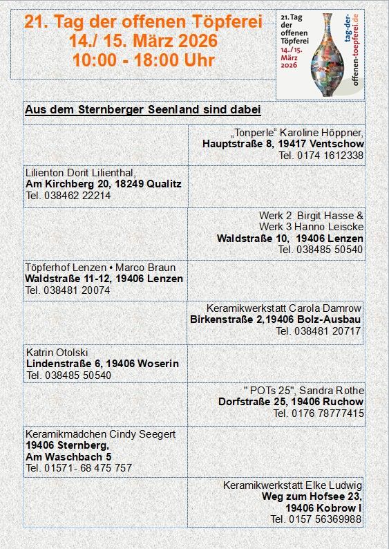 • das Begleitheft erhalten Sie in der Touristinfo Sternberg •
